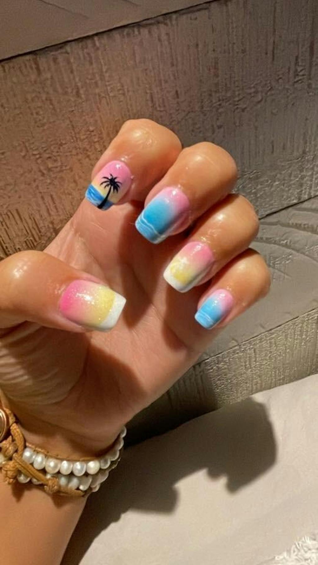 - Pattern: palm tree beach striped french