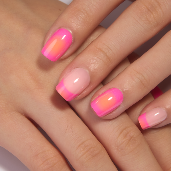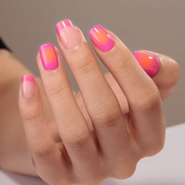 • Apply glue to both your nail and the press-on nail, or slide the press-on slightly 2–3 times when applying to evenly spread the glue.