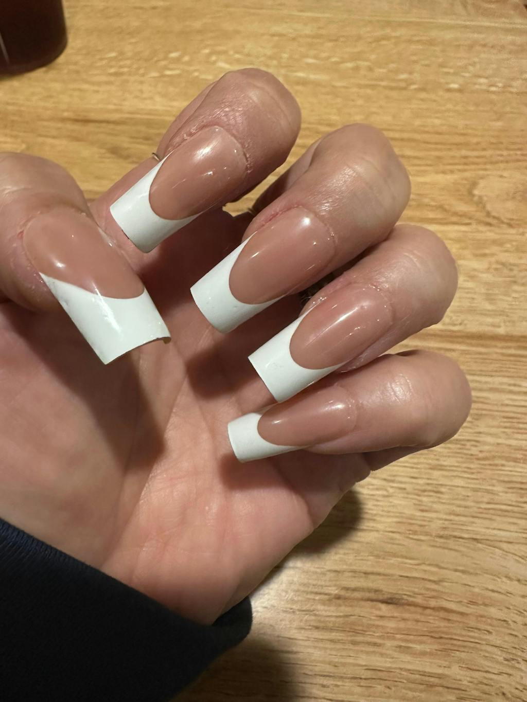 Tragen Sie eine gleichmäßige Schicht Kleber auf Ihre Naturnägel und die Rückseite des Press-on-Nagels auf. Richten Sie den Kleber an Ihrer Nagelhaut aus und tragen Sie ihn leicht nach unten geneigt auf. Drücken Sie fest nach unten und halten Sie ihn 10–20 Sekunden lang gedrückt. Anschließend feilen oder klammern Sie, um die perfekte Form zu erhalten. Für Details zu verschiedenen Klebern klicken Sie hier, um mehr zu erfahren ⬇️