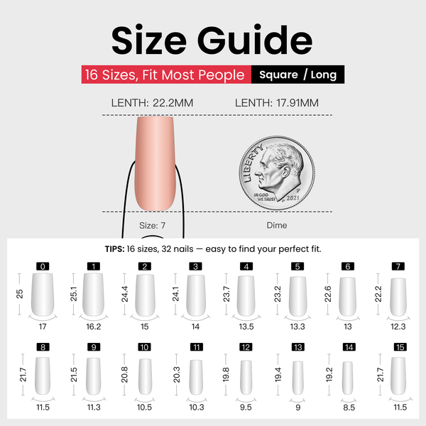 12 Größen, 24 Nägel pro Box : Jedes Set mit 24 Press-On-Nägeln, erhältlich in 12 verschiedenen Größen, sorgt für eine perfekte Passform. Außerdem erhalten Sie alles, was Sie brauchen, einschließlich Nagelkleber, Klebelaschen, einer doppelseitigen Nagelfeile und einem Nagelhautstift.